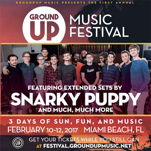 Jazz-rock fusion masters Snarky Puppy are set to perform at GroundUP Music Festival in Miami Beach. The festival will take place February 10-12, 2017. Artists scheduled to perform include Snarky Puppy, David Crosby, Laura Mvula, John Medeski, Chris Thile, Charlie Hunter, Shelly Berg, Terence Blanchard, and Pedrito Martinez.