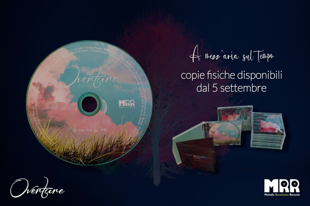 The Italian progressive rock band Overture has returned to release their sophomore album, titled, A Mezz’aria Sul Tempo, on September 5th, of this year. The album was released by Melodic Revolutions Records. The title translates, (suspended in time), which absolutely explains the upside-down city, pictured on the album cover.