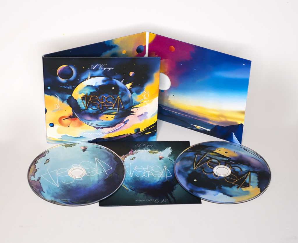 The artwork for “A Voyage ? A Destination,” was created by Amy Winter. Mel Barton, on the other hand, created the artwork for the part II of the album. Concepts and layout were completed by Matthew Dolmage, with the assistance of Steffany Hunter. The Versa ambigram logo was created by Lane Longton. Recording of “A Voyage / A Destination,” was engineered, and produced by Matthew Dolmage from May 2021 to June 2024 at Talisman Studios in Victoria, BC, with assistance from Benjamin Rancourt and Jesse Bell.